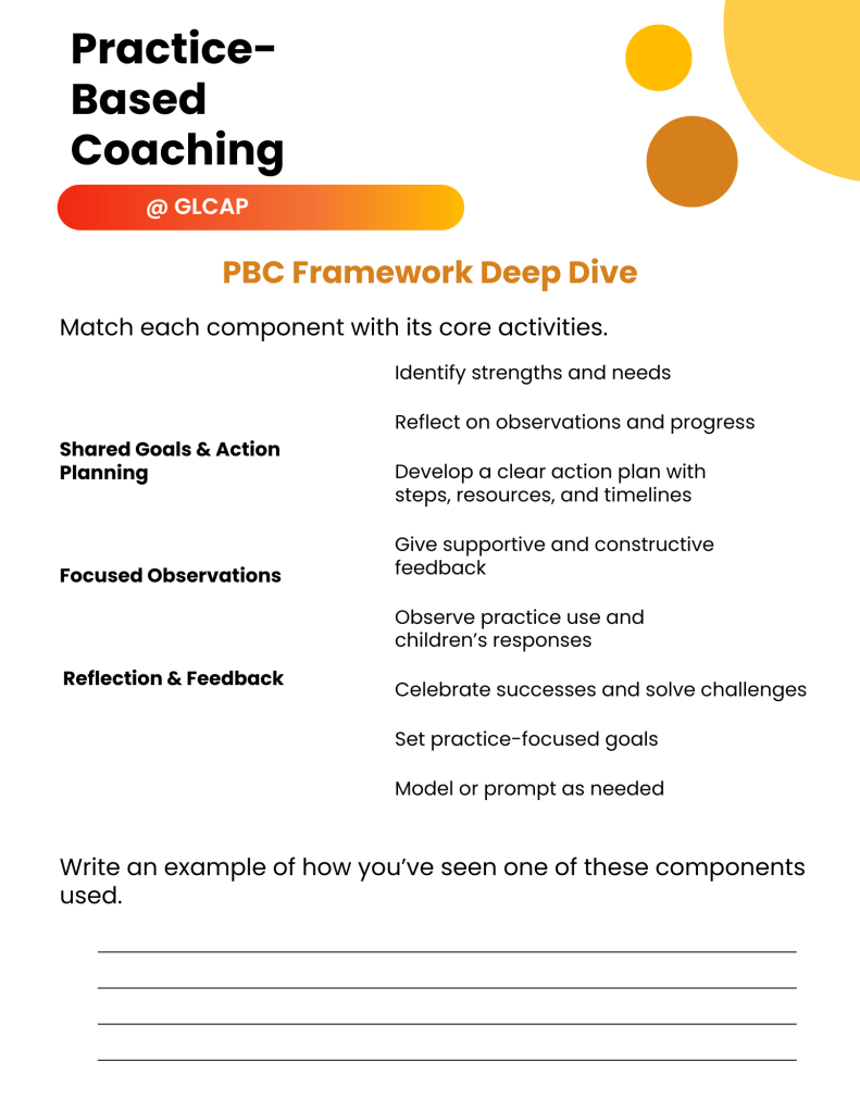 This activity supported participants in connecting the core components of the PBC framework to specific coaching actions.